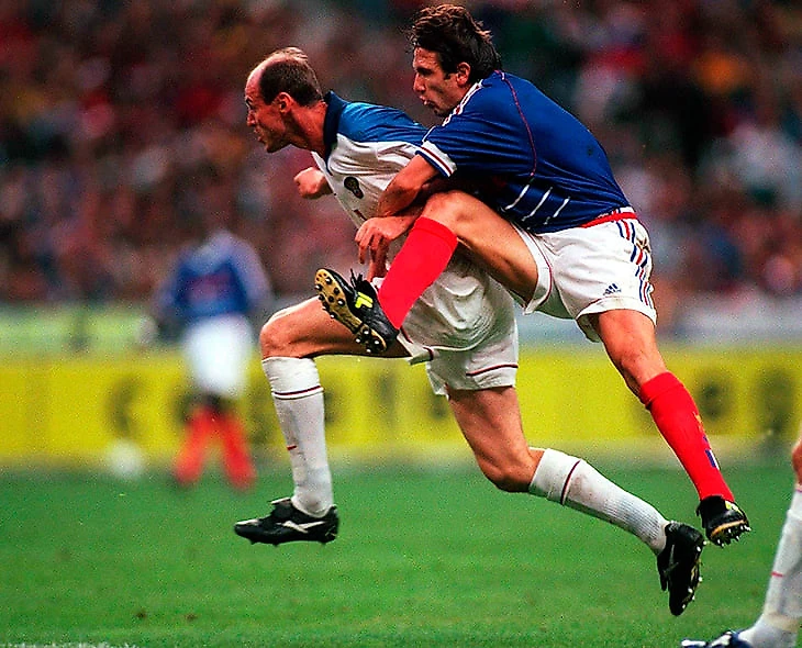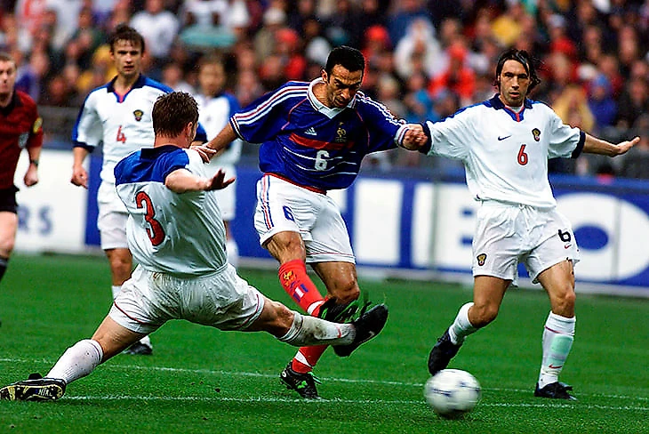 Франция была без Зидана, но состав все равно смотрелся предельно воинственно: Бартез, Тюрам, Десайи, Дешам, Пети, Джоркаефф – все играли с Бразилией в финале домашнего чемпионата мира.