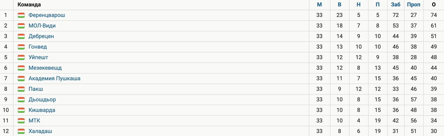 После сокращения таблица чемпионата Венгрии стала намного плотнее. За четыре сезона до сокращения ни разу не обошлось без жесткого аутсайдера, который не набрал и 20 очков (как это знакомо). Теперь – интрига.