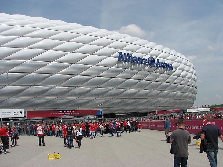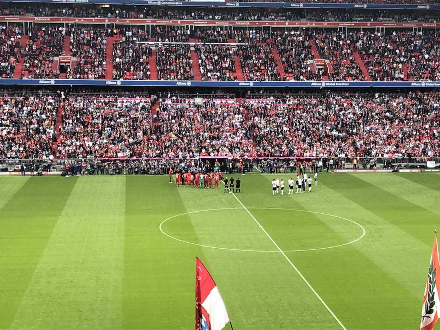 И вот она, красавица арена. Ультрасовременный стадион, на котором, правда, нет зарядных станций для телефонов. Упущение, господа инженеры:) Тысячи людей стремятся попасть внутрь, чтобы своими глазами увидеть матч «Баварии» против франкфуртского «Айнтрахта». Каждый болельщик «Баварии» должен побывать на этой арене хотя бы раз. И не важно, знает ли он иностранные языки в совершенстве, или же Лондон для него лишь «зе кэпитал оф Грейт Британ». Футбол интернационален, язык футбола поймет каждый, и здесь это чувствуется как нигде.