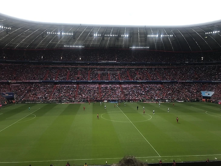 Арена вновь поражает воображение. Это невозможно описать словами. Любой язык мира слишком беден, чтобы в нем нашлись правильные формулировки. Особенно когда ты не просто сторонний зритель, а фанат «Баварии», болеющий за этот клуб далеко не один год. И не важно, первая это игра «звезды юга», увиденная с трибун, пятая или тридцать пятая. Стадион всегда будет прекрасен и всегда будет внушать благоговение и трепет, с какого ракурса ни посмотри.