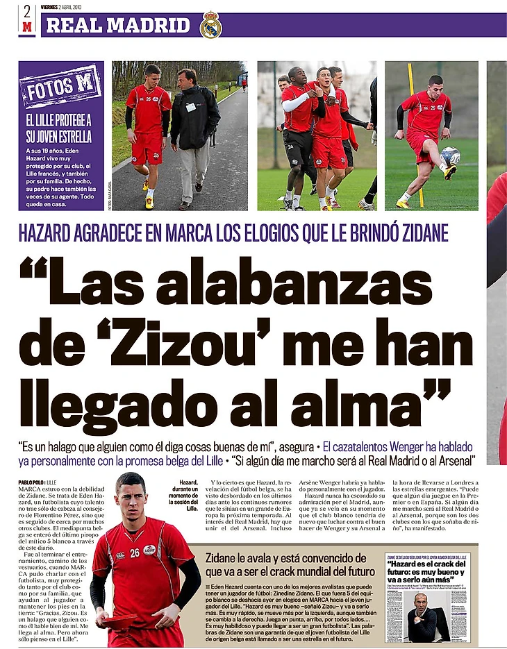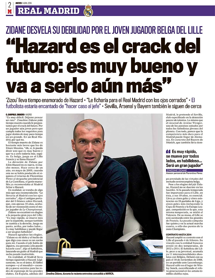 Зидан в интервью изданию «Marca» в 2010 году: «Эден Азар - это звезда будущего!»
