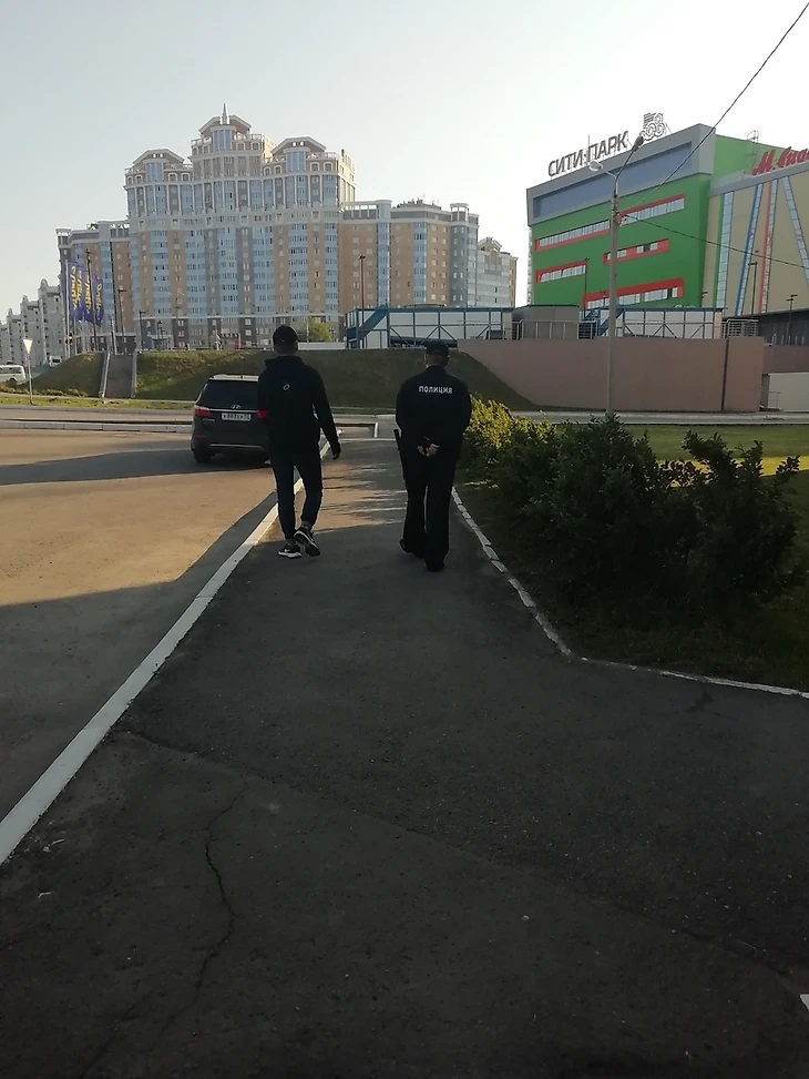 С самого утра в день матча покой жителей и гостей города оберегали вот такие тандемы.