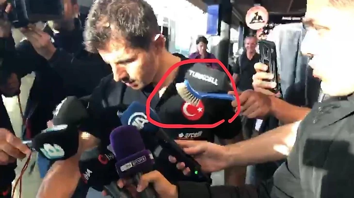 А самый неприятный эпизод произошел с капитаном сборной Эмре Белезоглу. В аэропорту 38-летнего полузащитника окружили журналисты, и некий человек, который изобразил из себя репортера, вместо микрофона протянул в лицо Эмре щетку для мытья посуды.