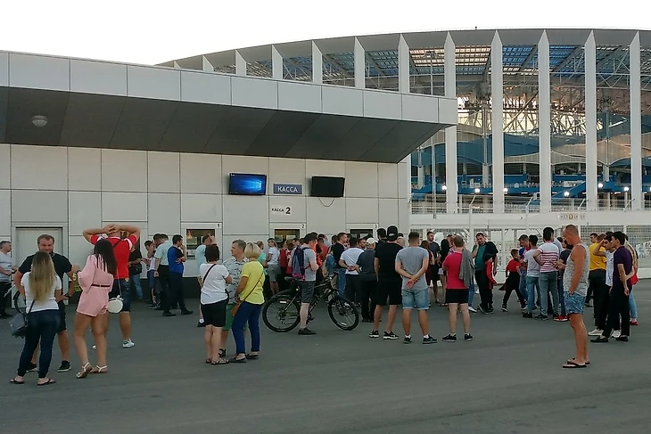 Первое, что бросается в глаза у самого стадиона- очереди в кассы.