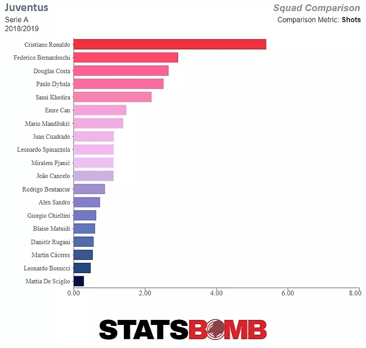 Как предыдущий лидер атаки "Ювентуса", Дибала оказался ненужным. Если сравнивать трансферную цену, то в сравнении с декабрем 2018 она упала на 22% (с 110 к 85 миллионам евро; данные:Transfermarkt). В общей сложности 22 гола в лиге в прошлом сезоне сопровождались только пятью в этом сезоне. Вот сравнительная статистика с прошлым сезоном (в Серии А; 2017/18→2018/19):