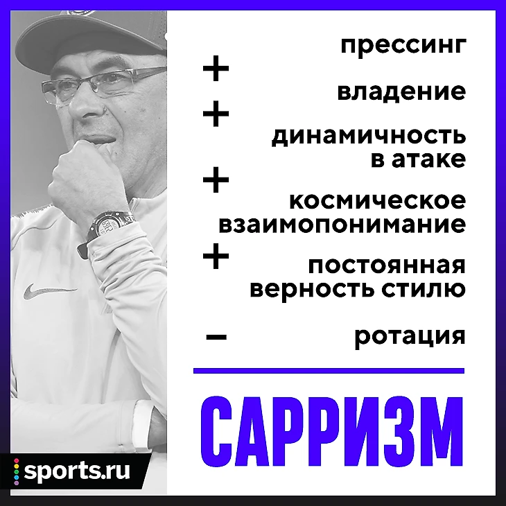 Осенью 2018-м термин «сарризм» официально добавили в итальянскую энциклопедию науки, письма и искусства. В Италии эту книгу называют Treccani – и она примерно настолько же культовая, как Encyclopedia Britannica в Англии. Это не уникальный случай (в 2016-м там же появилось понятие «контизм»), но серьезное признание узнаваемости тренера и его философии.