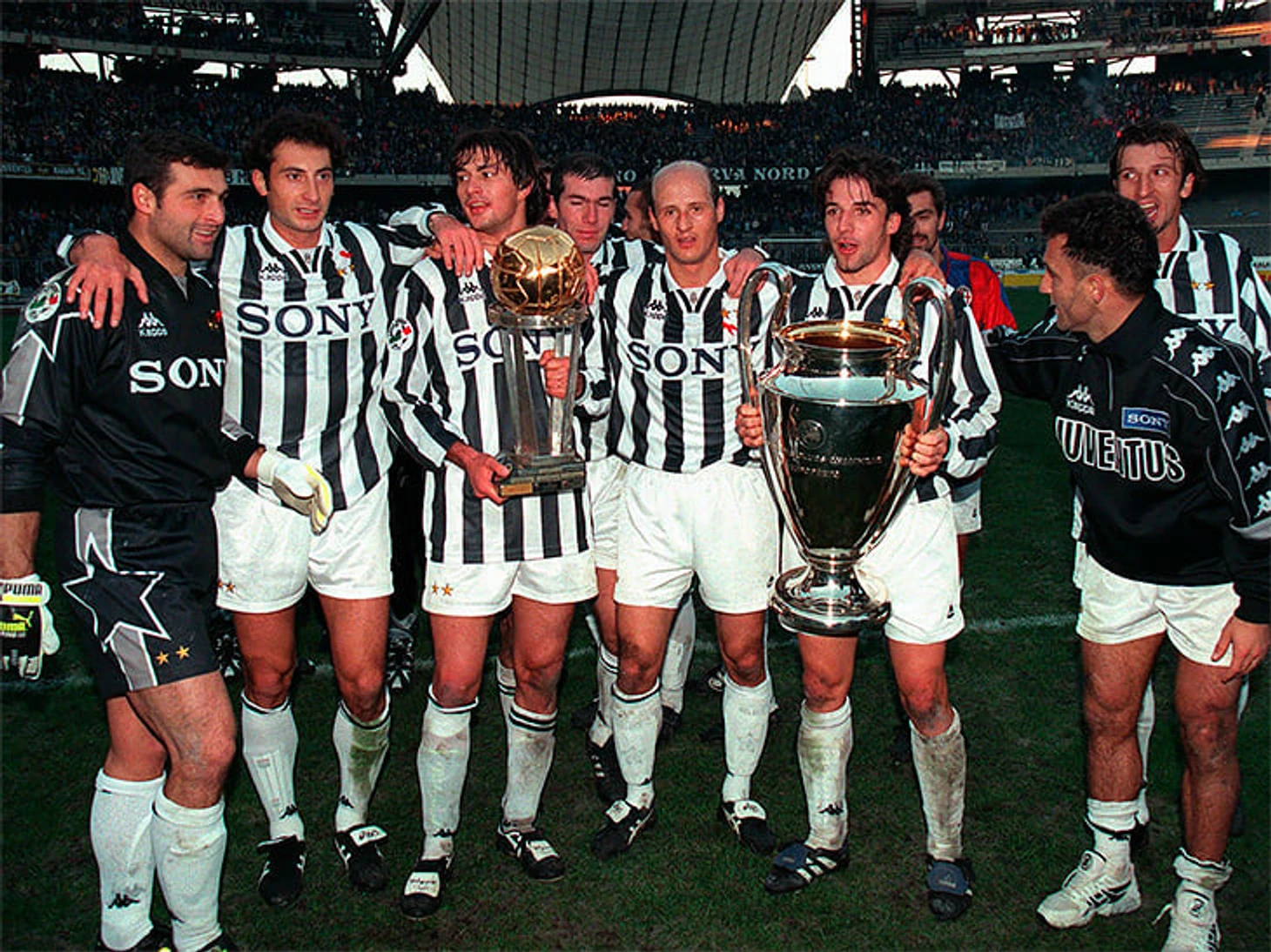 В следующие четыре года «Ювентус» четырежды выходил в финалы еврокубков, выиграл Лигу чемпионов, Межконтинентальный кубок и несколько внутренних титулов – всего девять трофеев, в среднем больше двух за сезон. Бьянконери царили в Европе, а досадные неудачи вроде сомнительного гола Миятовича только добавляли привлекательности машиноподобному туринскому гиганту. Творил Зидан, божил невероятный молодой Дель Пьеро; оба входили в тройку лучших игроков планеты и c поддержкой Индзаги, Конте и Давидса могли раздавить любой европейский клуб. Мир был шикарным и черно-белым, как лучшие фильмы Феллини.