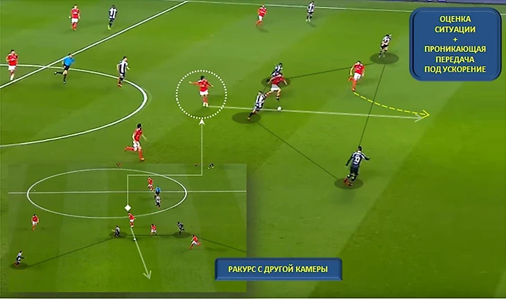 Очередной эпизод показывает способность не только отдавать классные передачи, но и подстраиваться под аналогичные пасы самому, врываясь на скорости в коридоры и начиная свое движение заранее: