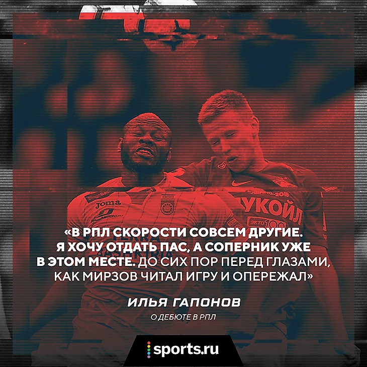 «Сначала было скучно в центре защиты, – говорит Гапонов в интервью Sports.ru. – Казалось, что просто смотришь, как другие играют в футбол. Отпустило, когда начал стабильно попадать в стартовый состав, сразу стало нравиться. Кайф – когда мешаешь нападающему забить, когда прерываешь все его усилия, видишь его отчаяние».