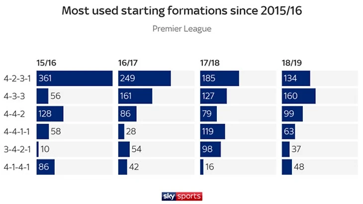 Несколько лет подряд схема 4-2-3-1 была доминирующей в английском футболе, в сезоне 2015/16 ее использовали больше половины команд лиги. Постепенно их число шло на убыль и вот теперь ее сбросили с пьедестала.