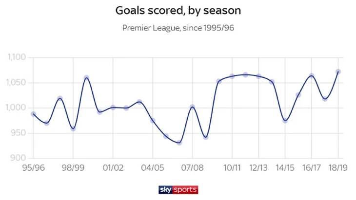 Это самый высокий показатель с 1995-го года, когда состав Премьер лиги был сокращен до 20-ти команд. Предыдущий рекорд был установлен в сезоне 2011/12 и составлял 1066 голов.