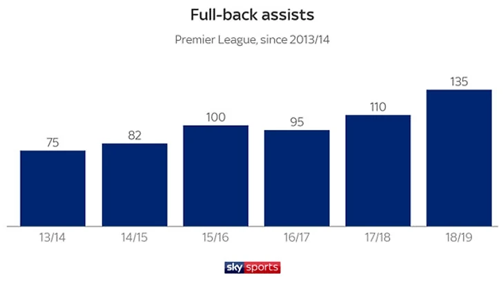 Крайние защитники отыгрывают все большую роль в атаке своей команды. За последние пять сезонов четко видна закономерность, как количество их результативных передач возрастало. Если в сезоне 2013/14 ассистов было всего 75, то в этом сезоне планку подняли уже до 135-ти.