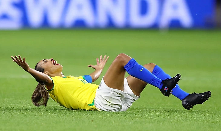 Матч 1/8 финала женского чемпионата мира между Бразилией и Франции бразильянка Марта – ее часто называют лучшей в истории женского футбола – отыграла с губами кроваво-красного цвета.