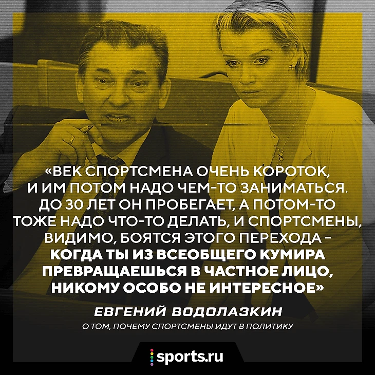 Но если говорить серьезнее... Спортсмены всю карьеру очень далеки от политики: они не говорят на политические темы, живут вне этих раскладов. Отсутствие интереса к политике, которое очевидно в спортивной среде, по инерции переходит и на всю последующую жизнь.