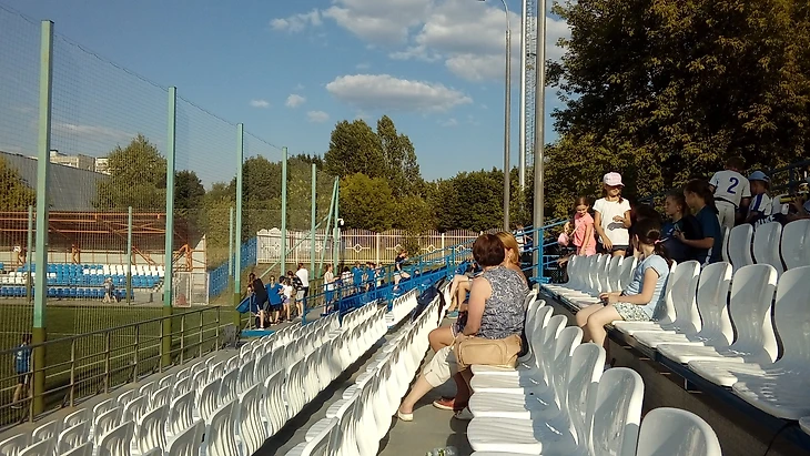 На большой трибуне за воротами (открыта недавно) сидеть было невозможно. Детский шум, включающий отдачу от металлического каркаса, метание гвоздей (?), а также бесконечным мат – родители, следите за речью своих детей, и когда они общаются между собой. Ладно, мальчики, но девочки!