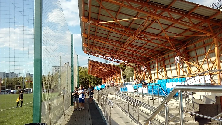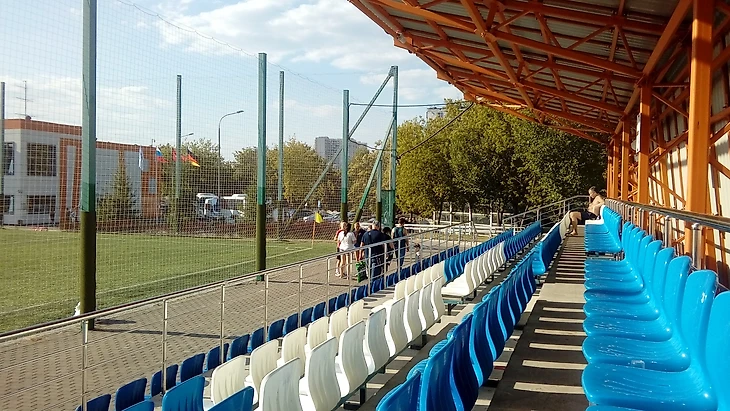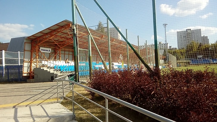 Сам стадион хороший. Расположение почти во дворах, по-британски. Трибуны по центру крытые, за воротами – частично. Стадион чисто футбольный, видимость отличная.