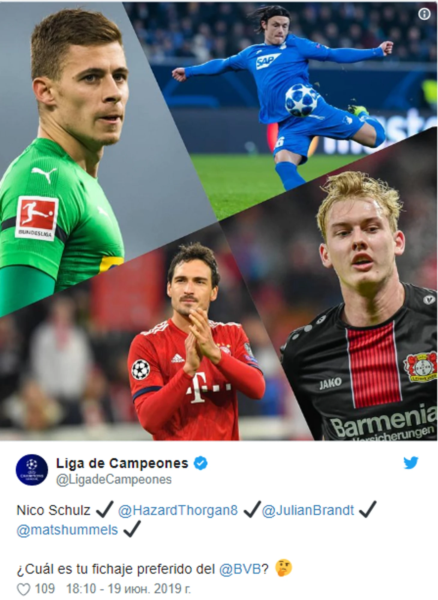 До Хуммельса они приобрели троих исполнителей, не заглядывая дальше собственной лиги. Пришел левый защитник из "Хоффенхайма" Нико Шульц, молодой и уже опытный полузащитник сборной из "Байера" Юлиан Брандт и лидер "Боруссии" из Гладбаха Торган Азар. За каждого было отдано не более 28 млн. Дортмунду оставалось лишь закрыть центр обороны опытным игроком, ведь в прошлом сезоне одаренному молодняку команды не хватало именно опыта.