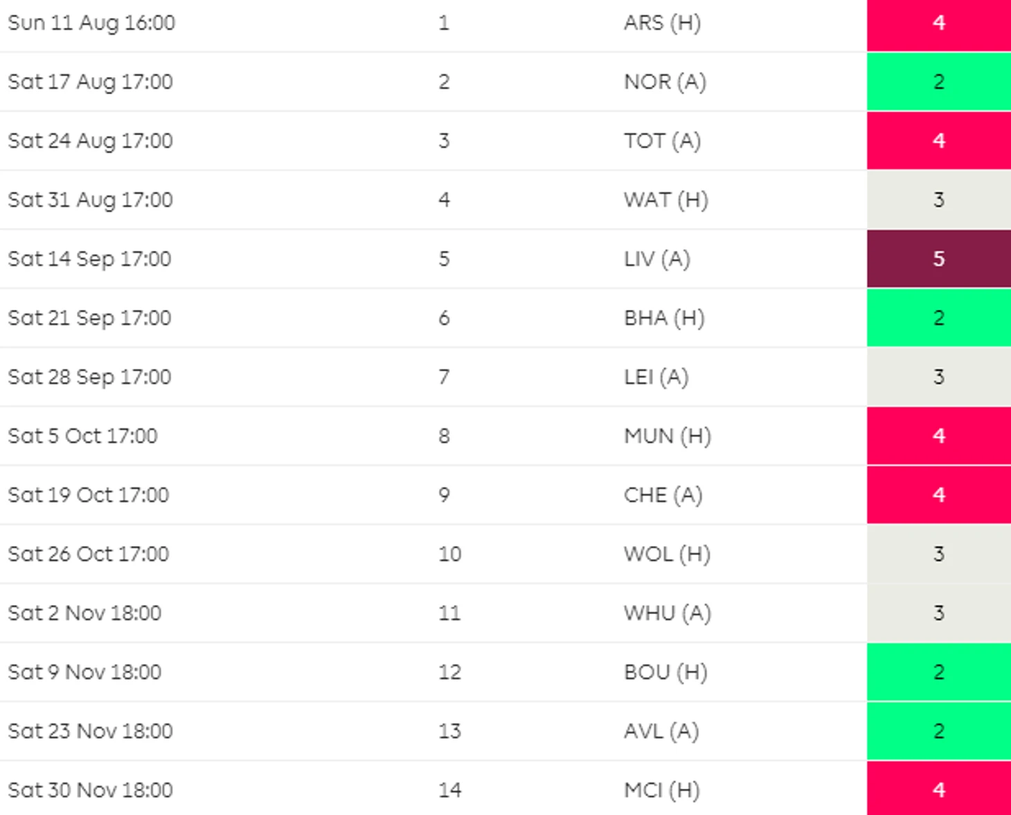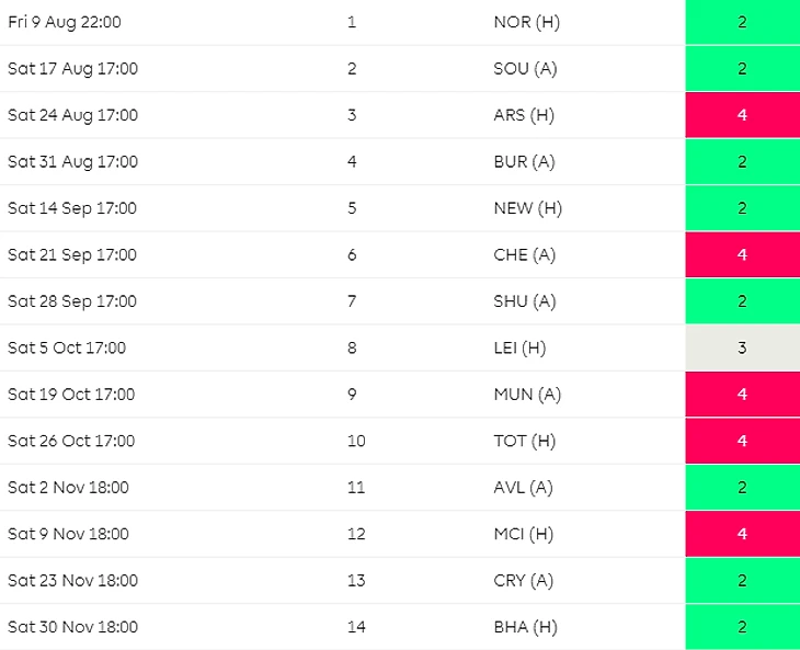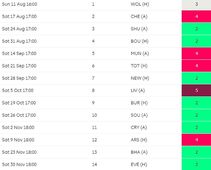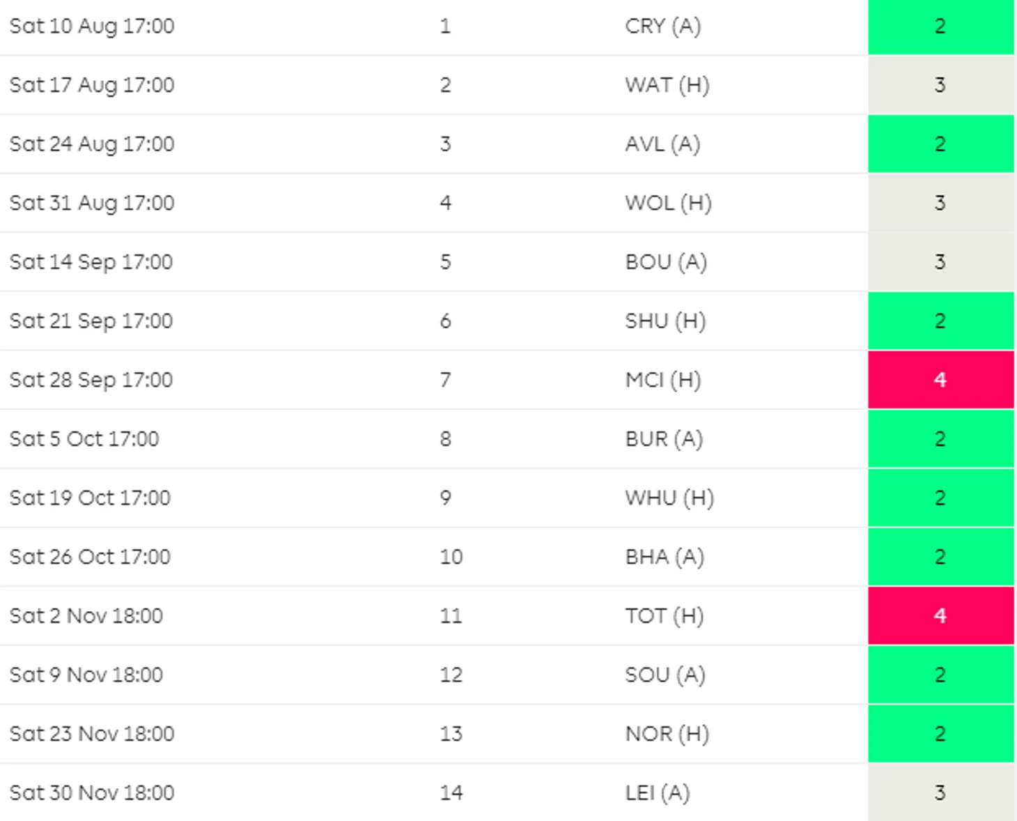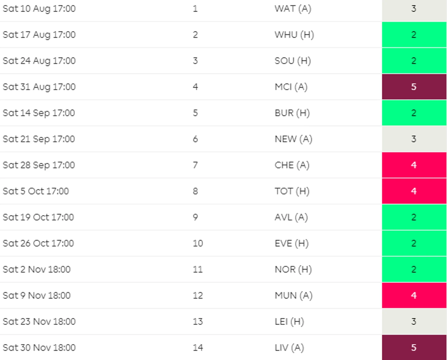 Не берите в голову весь этот календарь! Акцентирую внимание на стартовых матчах. Рабочий выезд к Уотфорду, затем два перспективных домашних матча с Вест Хэмом и Саутгемптоном. До четвертого тура голова по кандидатуре вратаря болеть не должна.