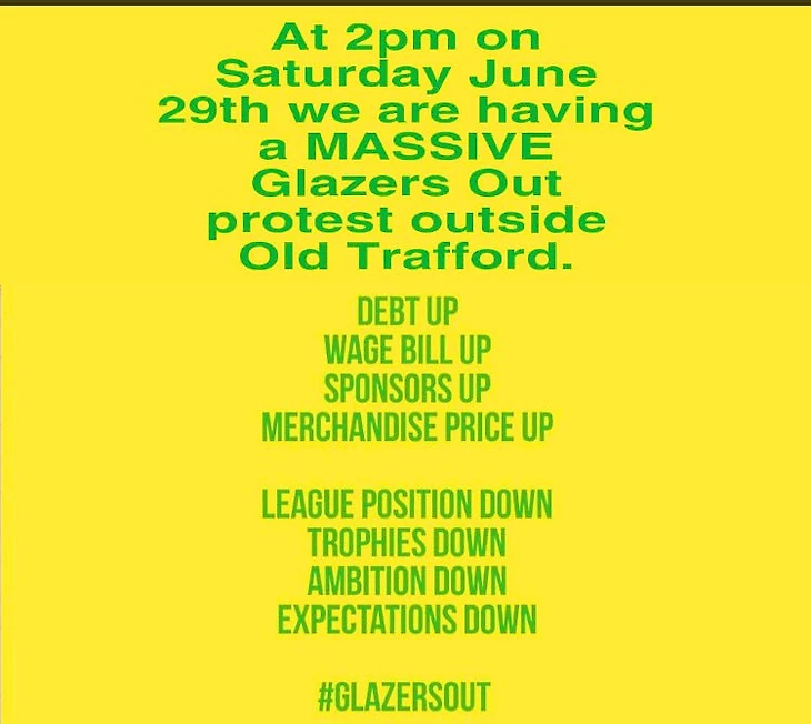 Протест в твиттере вел к конкретному делу - пользователи собирались устроить протест возле Олд Траффорд 29 июня. То есть в эту субботу. Призыв звучал так: