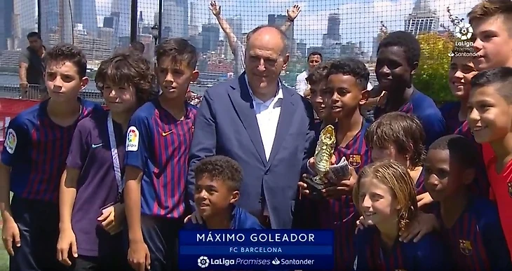 В Нью-Йорке завершился престижный турнир для игроков не старше 12 лет. По окончании финального матча раздавали личные награды лучшим игрокам. Сразу стоит упомянуть о том, что 2 месяца назад царь президент «Барсы» Жозеп Бартомеу приказал всем молодым игрокам (которые соревнуются в формате футбол-7) отказаться от получения наград на любых турнирах. Фамилии игроков барселонских команд должны были быть вычеркнуты из числа номинантов в любой категории, от лучшего голкипера и до лучшего бомбардира. 2 недели назад Ямаль должен был стать лучшим бомбардиром вместе с севильцем Совом, но в итоге из-за этой директивы остался без заслуженного трофея.