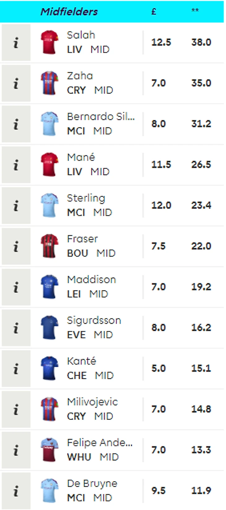 Полагаю, что Заа, Мэддисон, Миливоевич, Андерсон и Сигурдссон, во многом, столь популярны из-за авто-пиков. Согласны? Конечно, все они, как и Фрэзер, очень даже любопытны и потенциально полезны для набора очков в фэнтэзи, но столь высокие процентные показатели все-таки к старту сезона станут заметно меньше. А вот Бернардо Силва, возможно, самый недооцененный фэнтэзийный хав. Мой прогноз, что к зиме он будет стоить 8,7-9,0.