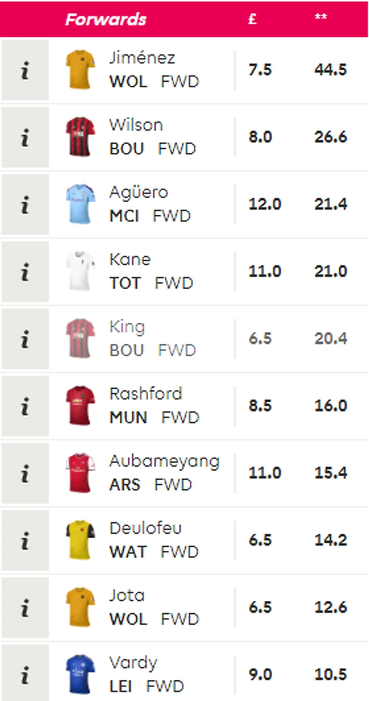 Хименес!!! ??? Я не был бы столь оптимистичен относительно мексиканца. Да и всего Вулверхэмптона в целом. Рауль сейчас напрягается по полной за сборную, а у его клуба ранний старт из-за еврокубков. Помните прошлогодний Бернли? Уилсон по мне слишком дорогой, но чисто под первый тур либо его, либо Кинга взять очень логично, ибо Борнмут принимает Шеффилд. Помня статистику Кейна в августе, не стал бы рисковать. А вот Варди, которому в первом туре биться дома с Вулвером, вполне! И в нагрузку к нему Мэддисона и лестерского новичка Айосе Переса. Стоп!!!