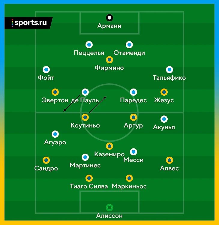 Более того, с каждой следующей заменой команда становилась еще более открытой – заканчивали с Ди Марией, Дибалой, Месси, Агуэро, Мартинесом и Ло Чельсо на поле. Именно из этой открытости и родился второй гол Бразилии.