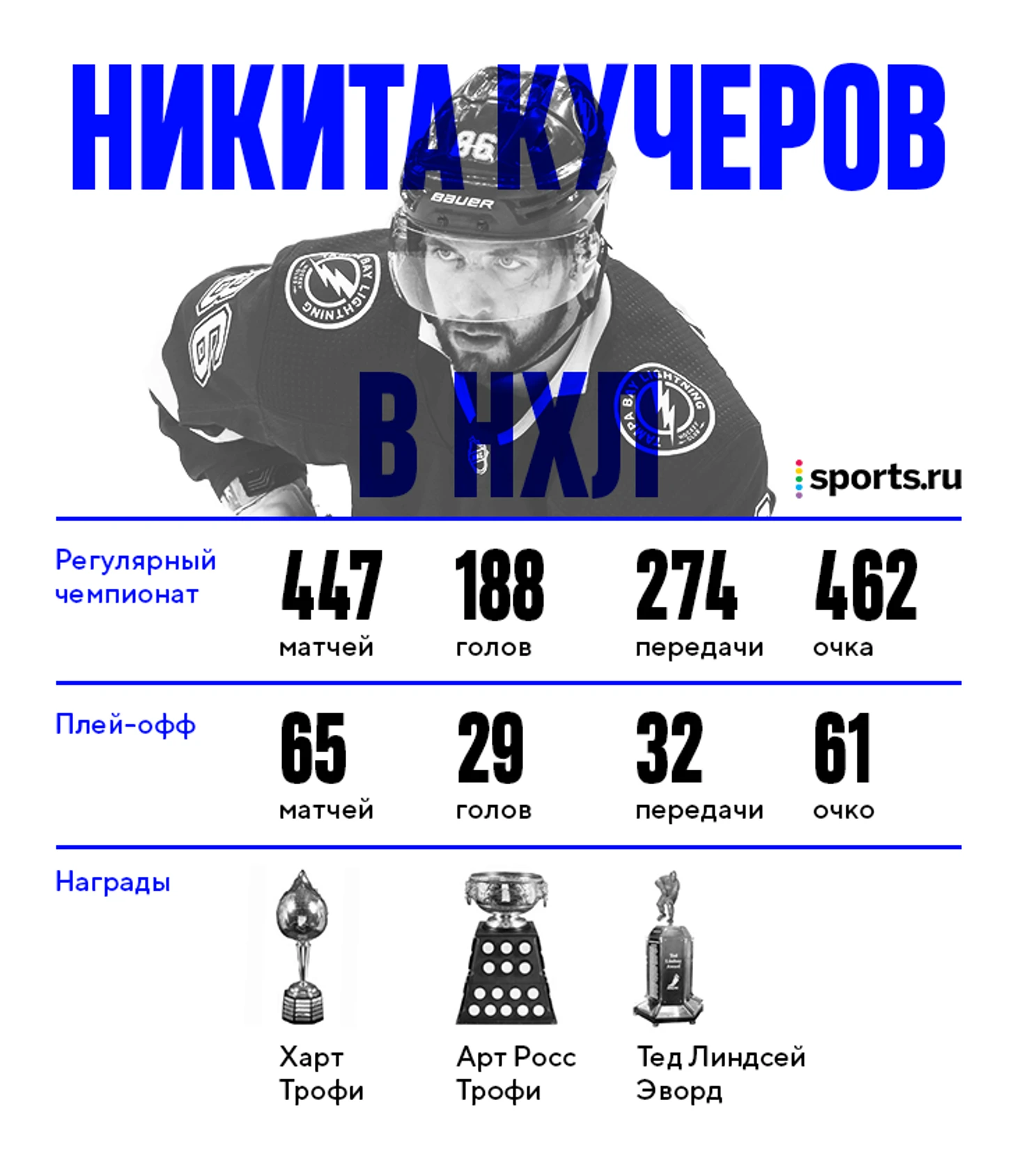 С осени активируется новый 8-летний контракт на 76 млн долларов – в следующем сезоне Кучеров будет девятым по зарплате в лиге (12 млн), а в среднем за год будет получать как Малкин (9,5 млн) и чуть меньше Овечкина.