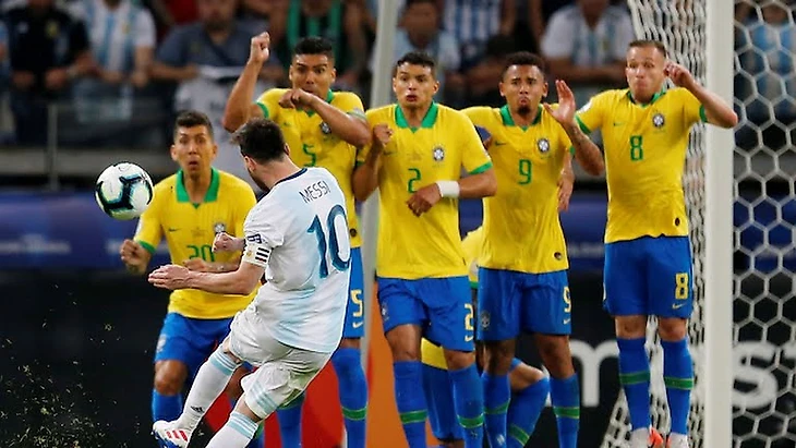 Здорово,что Скалони нашел ему в пару молодого форварда миланского "Интера" - Мартинеса, но вот выбор схемы игры 4-3-3 против Бразилии была его ошибкой (которую аргентинцы играли весь турнир): вместо того,чтобы максимально насытить центр поля, он выпускает в пару к Паредесу - Де Паулю атакующего игрока Акунью! Зачем это сделано - совершенно не понятно, если необходимо было созидание в середине поля, то для этого подходил Ло Чельсо, если нужно был прессинг в опорной зоне Паредесу, то на позиция мог бы выйти Родригес. Но Аргентина вышла играть в атакующей футбол против одной из самых опасных и прагматичных команда сейчас в мире! Нелепость, или это так успех с Венесуэлой их вдохновил??? Далее, стало понятно, что забить со стандарта у "бело-голубых" может получиться явно успешнее, чем с игры, благо, что Месси опасно навешивал и бил штрафные. Но адресатом его передач был низкорослый Кун (привет Мартину Суаресу), либо волшебно играл лучший вратарь мира Аллисон.