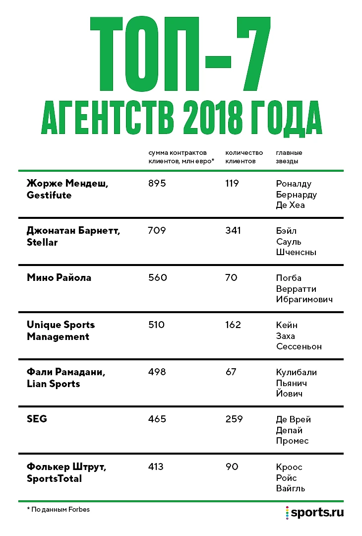 Впрочем, им всем далеко до главных суперагентов мирового футбола – Мино Райолы и Жорже Мендеша.