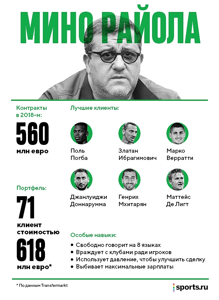Благодаря Райоле Недвед зарабатывал в «Юве» больше, чем Зизу в «Реале». Он же сделал Доннарумму капитаном и самым высокооплачиваемым игроком «Милана». И он же выкрал Погба из «Юнайтед», а в 2016-м вывел его в топ самых дорогих игроков планеты.