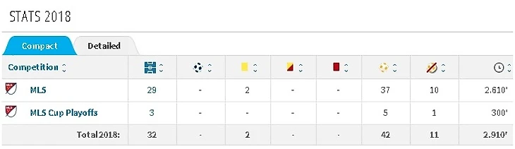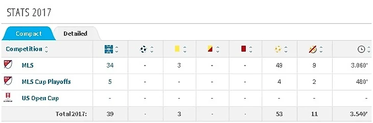 Увидев цифру в графе пропущенных мячей(жёлтый мячик), можно подумать, что Стеффен достаточно посредственный вратарь, но это не совсем так. Все 2 полных сезона, что он защищает ворота Коламбуса, его команда выходила в плэйофф кубка МЛС.