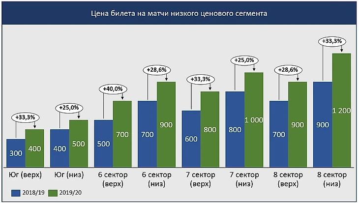 Сильный рост цен на 8 сектор точно снизит заполняемость верхнего яруса на всех матчах, а также заполняемость нижнего яруса на матчи со средними командами.