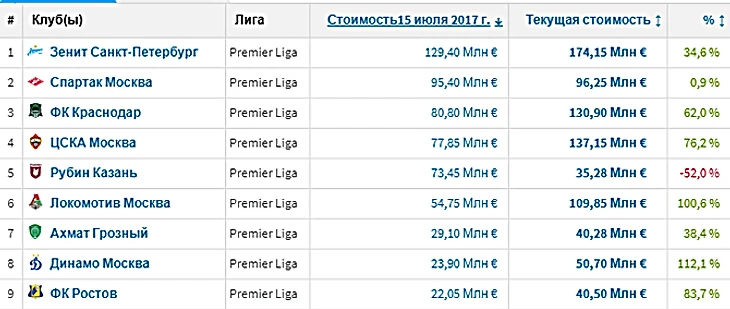 Наименьший прирост стоимости у проекта Федуна. Кого-то продали, кого-то купили, кого-то бесплатно отпустили и практически вышли в ноль, а конкуренты дружно обросли мясом. Заговор? Не думаю. Кто-то реально борется за титул, а кто-то просто пробивает тупик в поисках тупика посложнее.