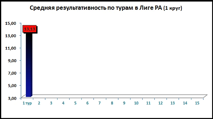 Средняя результативность 1 тура в Лиге РА -13,1 очка на команду