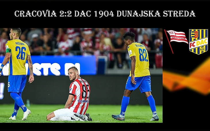 «Краковия» привезла домой, как и «Пяст» ничью 1:1, оставлявшую хорошие шансы на проход в следующий раунд. На 2-ой минуте все стало еще радужнее. Цесарич отдал передачу на Рафала Лопеса, а португалец ударом из-за пределов штрафной открыл счет в матче. Удар португальца попытался через пятнадцать повторить Цесарич, но прицел немного подвёл серба. На 21-ой минуте первый опасный момент создали словаки. Вида нанёс мощный удар из-за пределов штрафной, но Пескович не без труда перевел мяч над перекладиной. «Полосатые» продолжали владеть инициативой, футболисты из Дунайской Стреды делали ставку на быстрые контратаки. Великолепный шанс удвоить преимущество краковчан упустил ван Амерсфоорт, пробивший выше ворот с убойной позиции. На перерыв «Краковия» ушла, минимально ведя в счете. Но у подопечных Михала Пробежа был пример «Пяста», который день назад также вел в счете после первого тайма. Во втором тайме результативной стала снова 2-ая минута. Эрик Давис передачей с левого фланга нашел набегающего Ронана Коннора, который вонзил мяч в угол ворот Песковича. Через три минуты провалом в обороне «полосатых» мог воспользоваться Дивкович, но его удар парировал Пескович. Постепенно краковчане пришил в себя после пропущенного и снова начали подходить к воротам соперника. На 71-ой минуте снова отличиться мог ван Амерсфоорт, на этот раз отличиться нидерландцу не позволила перекладина ворот гостей. «ДАК 1904» также не отсиживался в обороне, один из самых активных в их составе Дивкович снова оказался на ударной позиции, но вновь он проиграл дуэль Песковичу. Матч плавно перешел в дополнительное время. Тридцатиминутка началась с грубейшей ошибки Михала Хелика, которая привела к выходу Рамиреза один на один с Песковичем, в этот раз словак был бессилен. «Краковии» нужно забивать дваждды, чтобы проходить во 2-ой квалификационный раунд. Краковчане начали настоящий штурм ворот Едлички. Удар Димуна с нескольких метров принял на себя защитник, а ван Амерсфоорт продолжал проверять на прочность перекладину, мяч просто не хотел идти в ворота словаков. Во втором дополнительном тайме ситуация мало изменилась, хозяева продолжали осаду ворот гостей, раз за разом удары наносили даже центральные защитники, подключающиеся к атакам. Забить «Краковии» удалось только на 122-ой минуте, когда уже не осталось времени на третий мяч. «Краковия» покидает Лигу Европы, показав достойный футбол, проиграв из-за грубейшей ошибки Михала Хелик в начале дополнительного времени.