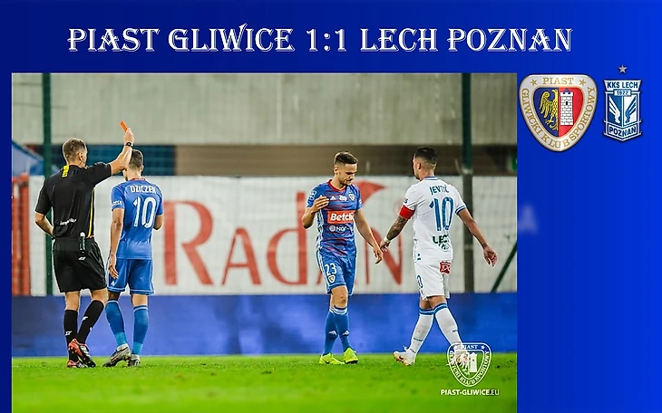 «Пяст», вылетевший на неделе из Лиги Чемпионов, мог улучшить настроение своим болельщикам, одержав на старте чемпионата победу над крепким познаньским «Лехом», который входит в новый сезон достаточно обновленным. Уже на 6-ой минуте гливичане открыли счет в матче. Подача Бадии с левого фланга нашла голову Феликса, которому не составило большого труда переправить снаряд в сетку. Познаньцы моментально пришли в себя и ответили своими несколькими атаками. Сначала после углового за хозяев вступилась штанга, а Мухар с нескольких метров пробил выше ворот, затем защитнику «красно-синих» пришлось выносить мяч с ленточки ворот после удара головой не самого высокого Южвяка. «Лех» старался активно использовать стандарты. Так, новоиспеченный капитан «Леха» Дарко Йевтич пробивал в дальний угол со штрафного, но Францишек Плах сумел парировать удар швейцарца. Атакующий запал гостей закончился около 25-ой минуты, после чего хозяева вновь завладели инициативой. Пажишек дважды опасно пробивал по воротам ван дер Харта, однако отличиться форварду хозяев не удалось. После перерыва игра не изменилась, хозяева старались контролировать игру, великолепный проход сквозь оборону гостей совершил Павел Соколовски, но на удар сил полузащитнику не хватило, а Пётр Пажишек, добивавший мяч в практически пустые ворота, пробил слишком слабо. За это должна была последовать расплата, но раз за разом Плах выручал своих партнеров, активны были молодые фланги познаньцев в лице Южвяка и Пухача. Именно Южвяк на 77-ой минуте вырвался один на один с Плахом, защитник хозяев Хук не сумел догнать молодого «железнодорожника», за что был удостоен красной карточки. Уже через пять минут познаньцы сумели воспользоваться численным преимуществом. Что интересно, сравнял счет Павел Томчик, который еще два месяца назад праздновал чемпионство в Гливице, будучи в аренде в «Пясте». Более того, «Лех» мог вырвать и победу усилиями вышедшего на замену Макушевского, но его пушечный выстрел на угловой перевел Францишек Плах. «Пяст» и «Лех» закономерно делят очки между собой, рисунок игры познаньцев пока что сложно просмотреть, большую роль в их итоговом спасении сыграло удаление Хука, гливичане же отрезками смотрелись очень хорошо, но эти отрезки были довольно коротки по времени.