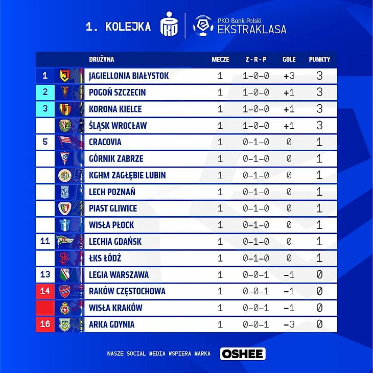 Фото: ekstraklasa.org, piast-gliwice.eu, cracovia.pl, legia.com, arka.gdynia.pl, lkslodz.pl, rksrakow.pl, wisla.krakow.pl, zaglebie.com, gornikzabrze.pl