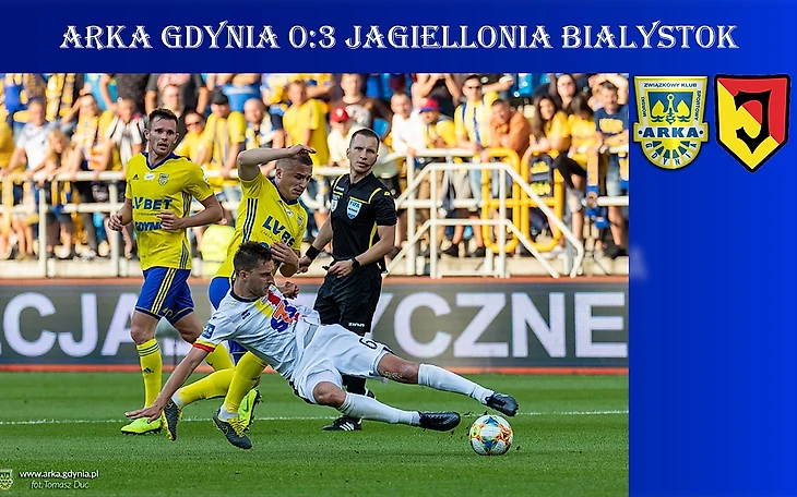 Новый сезон Экстракласы открывался матчем в Гдыне, где сошлись две команды, которые не могут занести себе в актив минувший сезон: «Арка» боролась за выживание, а белосточчане не сумели попасть в еврокубки. Команды не стали долго раскачиваться и сразу принялись за дело. Первый момент в матче возник у ворот гостей, после подачи с правого фланга Янковски пробивал с близкого расстояния головой, но угодил в сетку лишь с внешней стороны. Гости ответили куда более опасным моментом. Проход по правому флангу Хесуса Имаза завершился передачей на 18-летнего Бартоша Биду, который забил свой дебютный мяч в дебютном матче в Экстракласе, а заодно и открыл счет голам в новом сезоне. Прошло всего 12 минут, а очередная атака правым флангом «пчёлок» завершилась вторым пропущенным мячом для хозяев. На этот раз Хесус Имаз выступил в роли наконечника. Хозяева были подавлены, на 21-ой минуте Имаз мог оформлять дубль, но его удар с лёту вышел совсем слабым, что позволило Стейнборсу забрать мяч. Во втором тайме «Арка» пыталась хотя бы сократить отставание в счете, но до по-настоящему опасных моментов доходило редко. Разве что Камил Антоник, также дебютировавший в Экстракласе, мог открыть счет своим голам в сильнейшей лиге Польши, но его мощный выстрел пришелся в перекладину ворот Венглажа. А ближе к концу матча «Ягеллония» довела счет до крупного. Тарас Романчу после подачи с углового пробил в девятку ворот гдынян, установив окончательный счет. В концовке встречи «арковцы» пытались забить гол престижа, но неразрешимых задач перед Венглажем они так и не поставили. «Ягеллония» начинает чемпионат с уверенной заслуженной победы, что также важно участие в голах приняли практически все игроки атакующей линии.