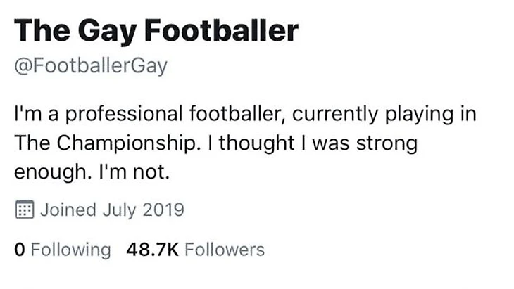 6 июля в твиттере появился аккаунт @FootballerGay, за которым стоит «профессиональный футболист из чемпионшипа возрастом до 23 лет», как утверждает сам создатель.