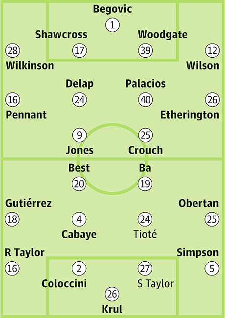 Под вопросом: С. Тэйлор (травма носа), Тиоте (травма колена)