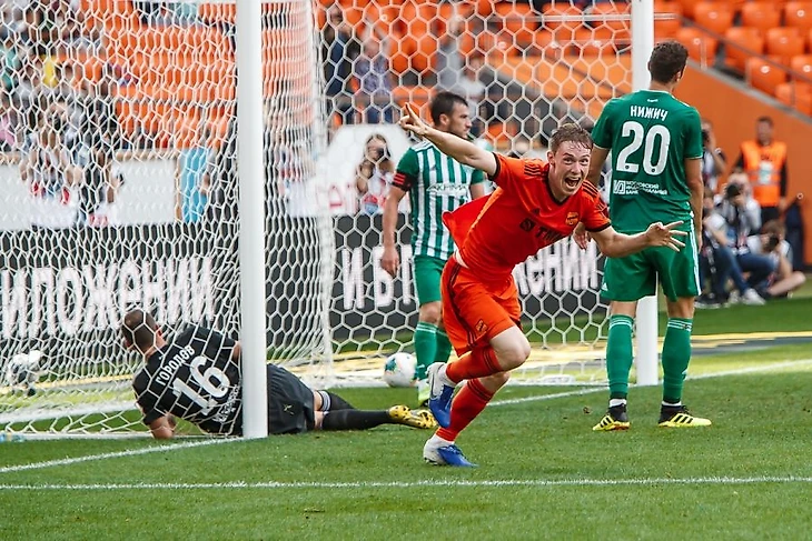 Крайний деф Меркулов мягко перевел мяч за спины оборонцев, а крайний полузащитник юркнул (хорошо, да, в отношении Бавина звучит?) в центр и зарешал.