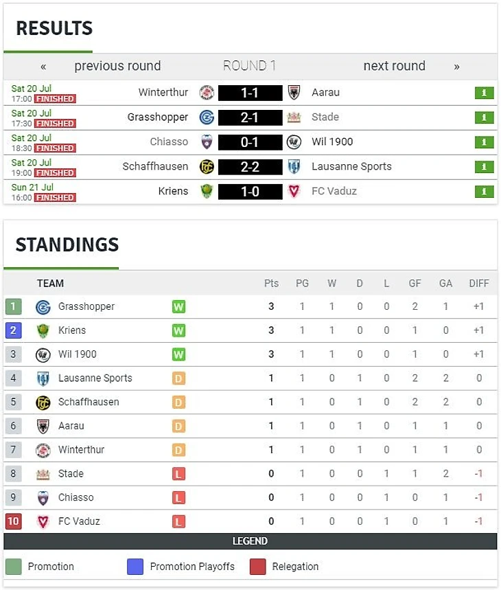 «Арау», о котором также необходимо вспомнить, говоря о претендентах на повышение в классе в начале сезона, тоже в первом туре разделил очки, схлестнувшись на выезде с крепким «Винтертуром». Для последних прошлый сезон стал лучшим с 2013 года, хоть и удержать второе место после зимнего перерыва винтертурцы не смогли. С Давиде Каллой в роли капитана и такими новичками как Роман Бюсс, у команды из кантона Цюрих есть все шансы показать достойную игру – что они в субботу и продемонстрировали. «Арау» же, на наш взгляд, был достаточно серьёзно обескровлен летом – как уходом Варола Тасара, которого сложно будет заменить, так и скандалом с косвенным участием Рамена, который почти ушёл тренировать «Базель», да не сложилось. Такие истории не лучшим образом влияют на мотивацию команды, как и упущенные с таким треском, как в стыках, возможности. Несмотря на то, что «Арау» удалось сохранить в команде Штефана Майерхофера и – каким бы то ни было образом – тренера Патрика Рамена, битый FCA со скромным бюджетом сложно воспринимать как серьёзного претендента хотя бы на те же стыки.