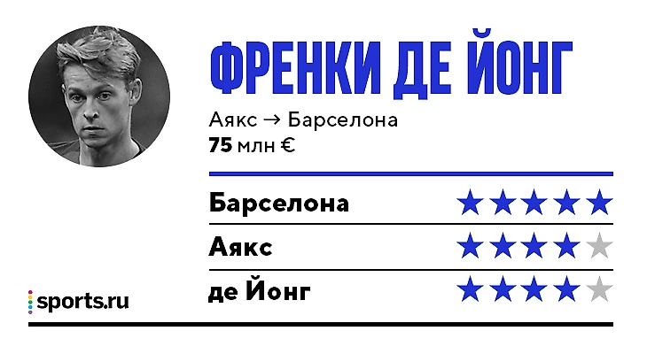 С точки зрения сиюминутных нужд все не так очевидно. Де Йонг играл в схеме 4-2-3-1 – в паре с Лассе Шене. Тренер «Аякса» Эрик тен Хаг прямым текстом говорил, что Френки нужен такой партнер, что Френки не способен играть шестерку. Но в «Барсе» в нем видят долгосрочную замену Серджи Бускетсу. Очень многому придется научиться. Прямо сейчас в составе нет однозначной и очевидной роли для него.
