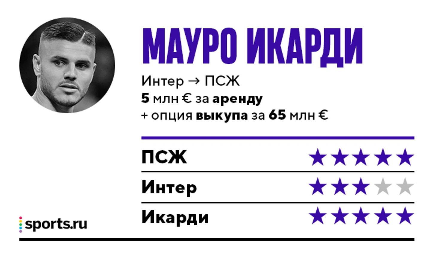 Икарди менее вариативен, чем Кавани, но не менее опасен внутри штрафной. В команде достаточно хорошо налажена доставка мяча в опасные зоны, поэтому главные слабости Икарди могут и не проявиться (уж точно не в Лиге 1). Если Мауро проявит себя не только дублером и не только внутри Франции, появится повод его выкупить. При этом «Париж» не рискует – в сделке нет обязательной опции выкупа. Если Икарди не выиграет конкуренцию, просто отправится обратно в «Интер».