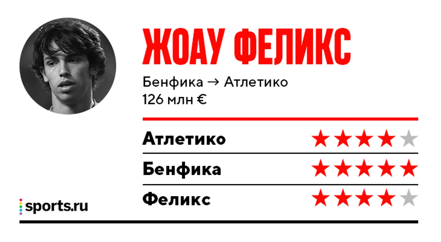 «Атлетико» переплатил: у Феликса всего один взрослый сезон плюс он явно сыроват с точки зрения оборонительной работы, о чем упомянул даже Симеоне. С другой стороны, ситуация была трудной: все на рынке знали о свободных деньгах и проблемах «Атлетико». «Бенфика» выжала из сделки максимум.
