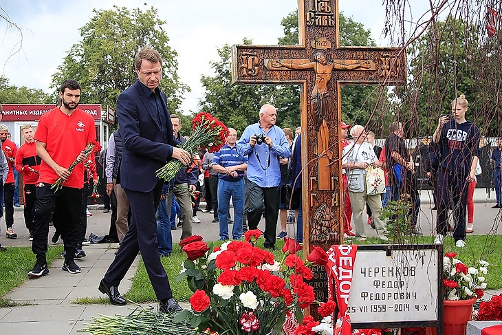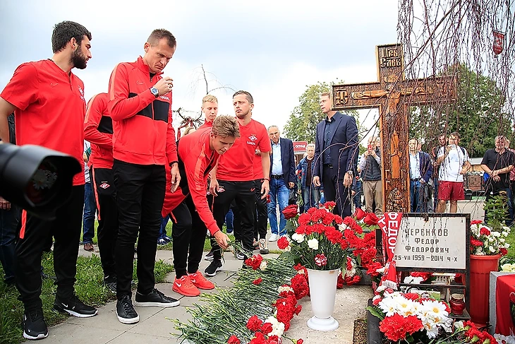 Сегодня утром игроки нашей команды, главный тренер, спартаковские ветераны и просто болельщики пришли на могилу Фёдора Фёдоровича Черенкова на Троекуровском кладбище и почтили память легендарного футболиста.