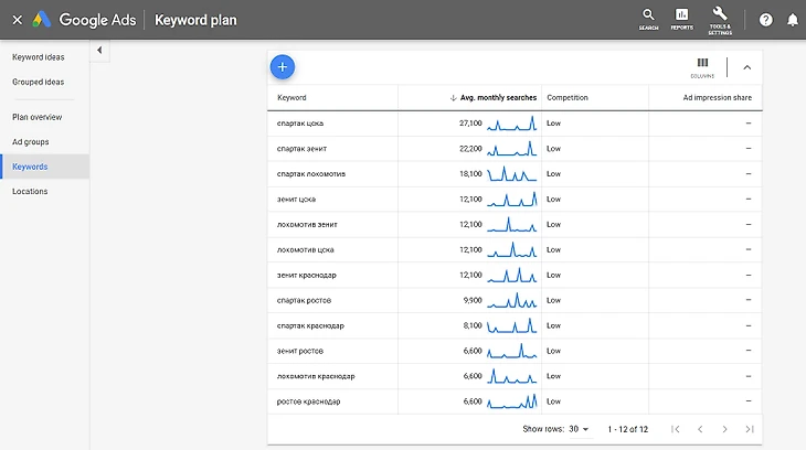 По данным google-поиска матчи с участием Спартака входят в ТОП-3 (среднемесячный показатель за последние 12 месяцев):