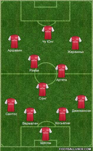 "Арсенал" (4-1-2-3): Щесны, Дженкинсон, Вермален, Косьелни, Сантос, Сонг, Артета, Рэмзи, Жервиньо, Аршавин, Чу Юнг.