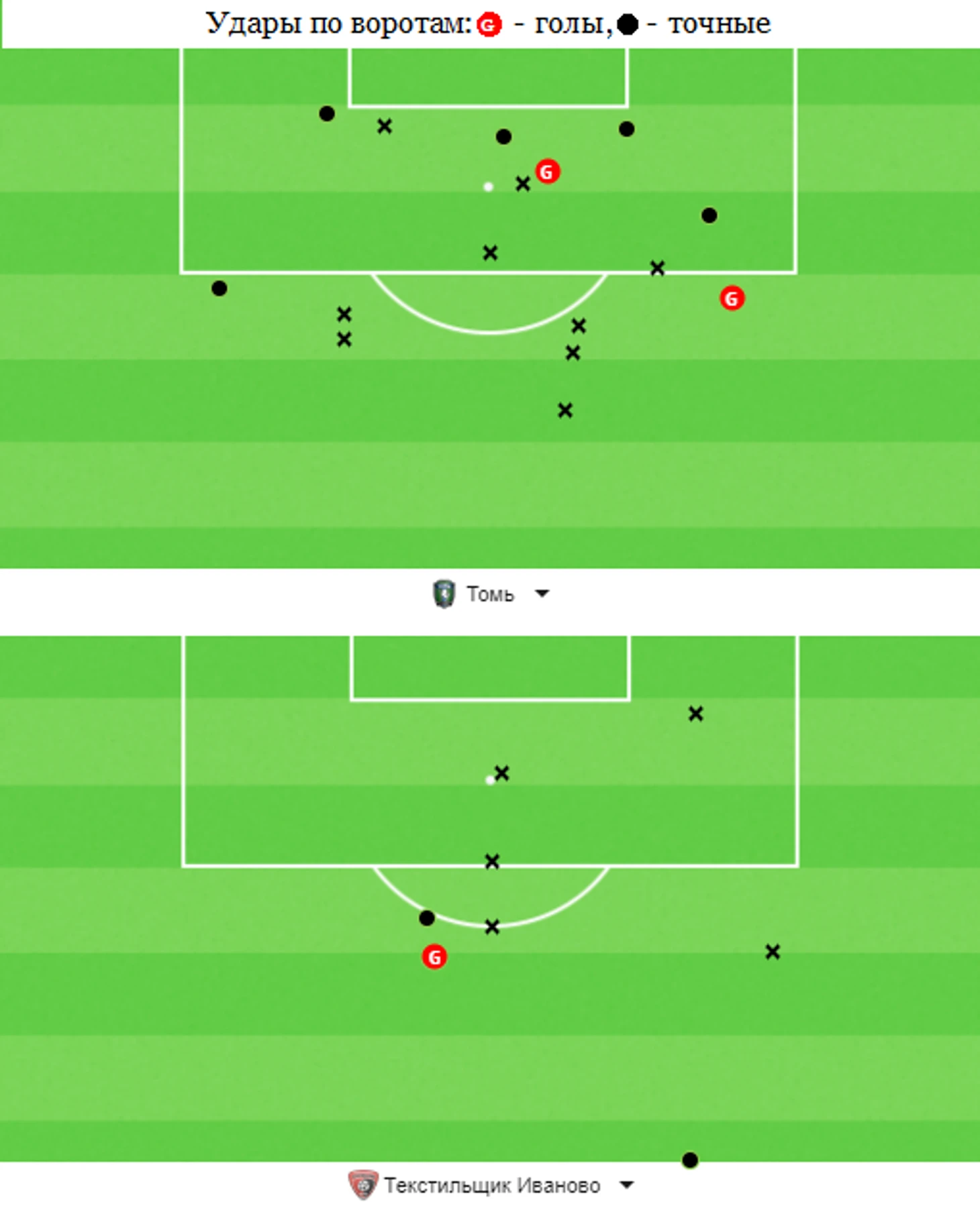 Владение мячом в пользу "Томи" (57% против 43%), удары/в створ (16/7 против 8/3), угловые 7-2, офсайды 2-1. Желтые карточки получили лишь игроки гостей - Евгений Маричев (37') и Николай Радченко (78'). Точность передач 81% против 80%, количество ключевых - 14 против 4.